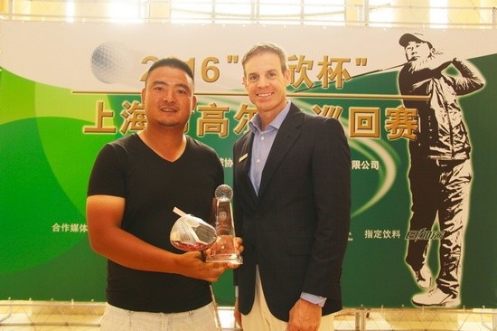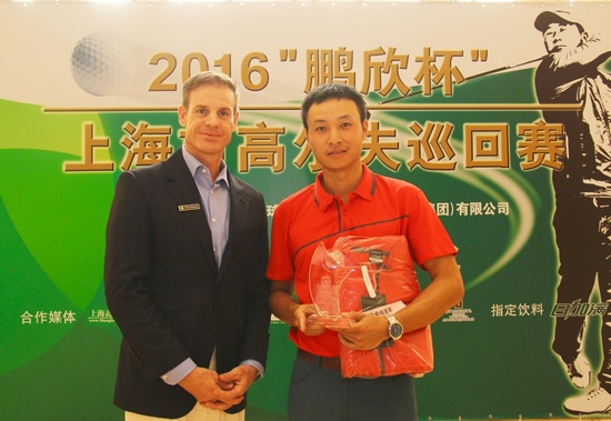 上海市高尔夫球协会常务副会长兼秘书长王锦培先生、上海览海国际高尔夫俱乐部总经理Erik Keyser先生为获奖选手颁发奖杯与奖品,职业组选手获得由鹏欣集团提供的奖金。
